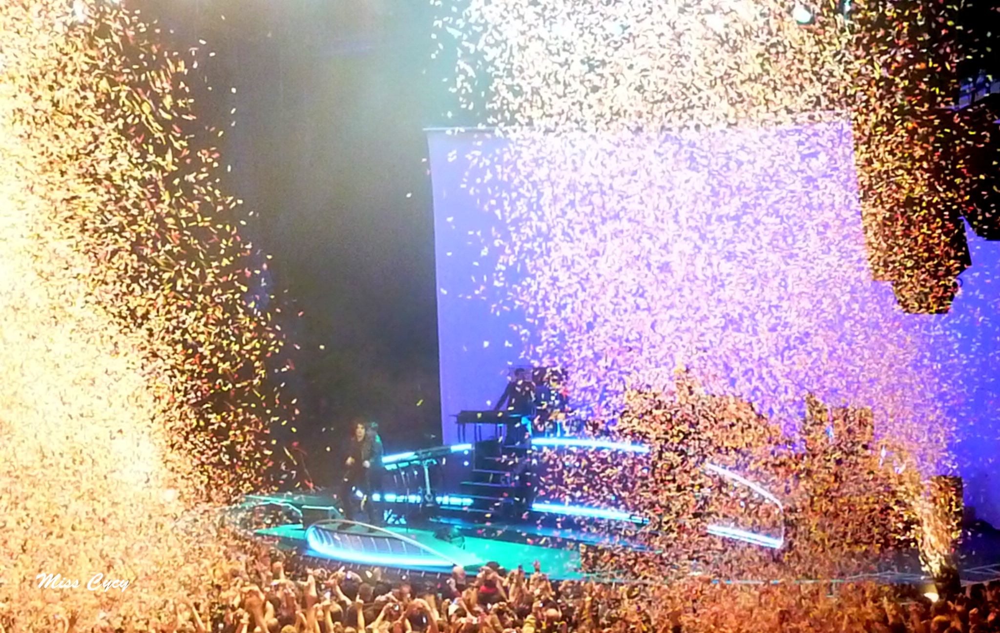 Le groupe alterne morceaux anciens et nouveauté avec Mémoria, premier single de Black City Parade, Wuppertal, College Boy, Kill Nico et Europane qui clotûre ce live. Aprés Wuppertal, Nicola Sirkis s’avance vers le public pour nous faire chanter J’ai Demandé à la Lune mais au bout d’un refrain et d’un couplet le son des synthés résonne et le groupe prend notre relève. Accompagné de sons très années 80, on retrouve avec plaisir Tes Yeux Noirs et également 3ème Sexe (dans le medley Black City Club) et 3 nuits par semaine.