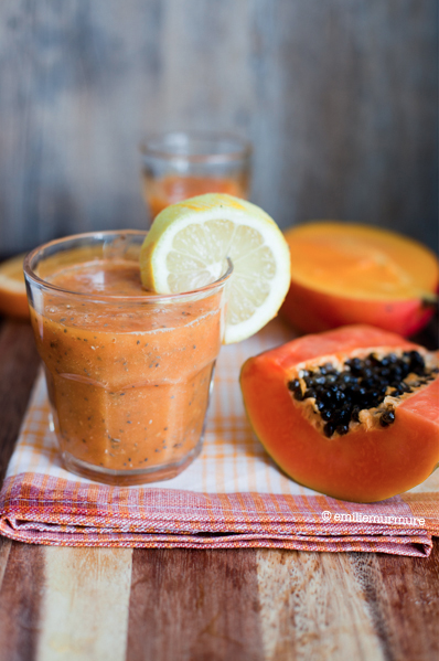 Et enfin, ultime élément de ce brunch on ne peut plus appétissant, le smoothie à la papaye, mangue et graine de chia. Graine de quoi ? Graine de chia. Il s’agit de graines cultivées depuis des siècles en Amérique Latine et qui constituent une source importante en Oméga 3, fibres, fer et calcium.