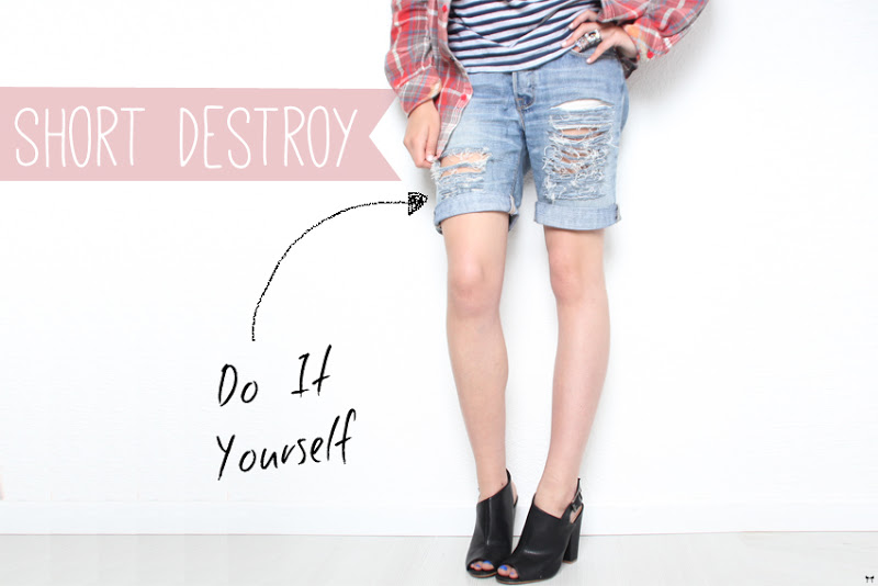 Cet été, le short destroy, entendez par là, troué, déchiré, voire déchiqueté, est LA pièce à avoir dans son dressing. Mais attention, hors de question de se ruiner pour porter un short troué ! Les trous, on les fait nous-mêmes, comme nous le montre Fanny du blog Une touche de rose.