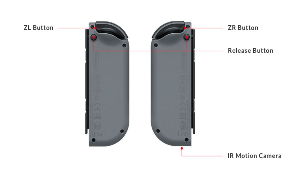 - Vue de derrière des JoyCon de la Nintendo Switch. Crédit : Nintendo.com