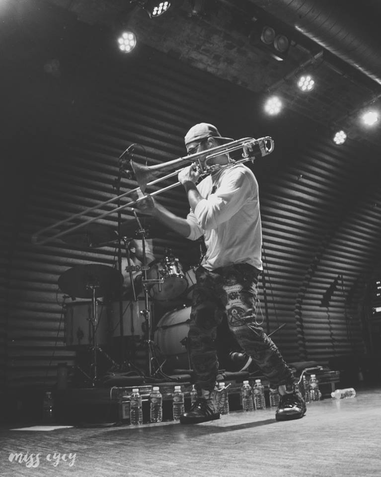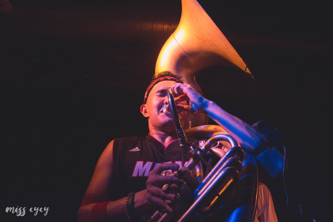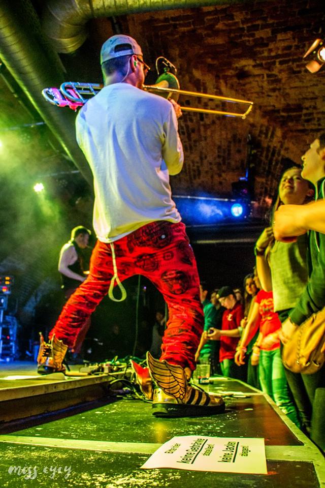 Vers 20h30 quand les cinq musiciens arrivent sur scène la foule s’enflamment 1h30 de concerts les titres s’enchaînent avec une énergie débordante. Un belle complicité existe entre les musiciens, les groupies se déhanchent sur les reprises de cette fanfare 2.0. Les amateurs de cuivres sont ravis. Le temps passe rapidement car l’ambiance et le show sont là !