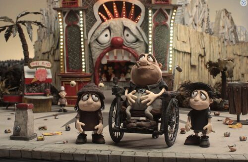 Si l’histoire racontée dans Mémoires d’un escargot aborde de manière bouleversante la solitude et la résignation, le travail des animateurs se doit d’être apprécié dans les détails. L’animation en volume (« stop motion » en anglais) consiste à animer image par image des objets ou de la matière inerte, comme la pâte à modeler. Elle apporte dans la nouvelle œuvre d’Adam Elliot une certaine gravité touchante : les deux personnages principaux sont représentés à l’écran par de petites figurines cabossés qui portent littéralement les stigmates de leurs mésaventures quotidiennes. Au début du film, la jeune Grace ne se sent « pas finie » à cause d’une malformation labiale à la naissance. Elle et son frère Gilbert ont chacun des blessures au bras qui composent ensemble un visage souriant, ce qui constitue une preuve de leur solidarité indéfectible. La blessure infligée sur le corps animé image par image devient un motif de résistance face à la cruauté du monde, dans la mesure où les jumeaux survivent de tous leurs malheurs en cultivant leurs particularités. En contraste d’un monde austère, fait d’harcèlements et de deuils en répétition, le long-métrage juxtapose avec subtilité une noirceur tournée en dérision et une étincelle d’espoir, incarnée par une vieille dame excentrique surnommée « Petit Doigt » (« Pinky » dans la version originale). Cette dernière guide avec gentillesse et sagesse la jeune Grace, en prodiguant des maximes optimistes comme « La vie se comprend seulement en marche arrière mais elle ne peut être vécue qu’en marche avant ». Le procédé d’animation utilisé renforce l’hostilité d’une société vicieuse, semblable au ton dramatique des romans de Charles Dickens, autant que le bonheur éphémère d’un cercle de personnages rejetés à cause de leur différence.